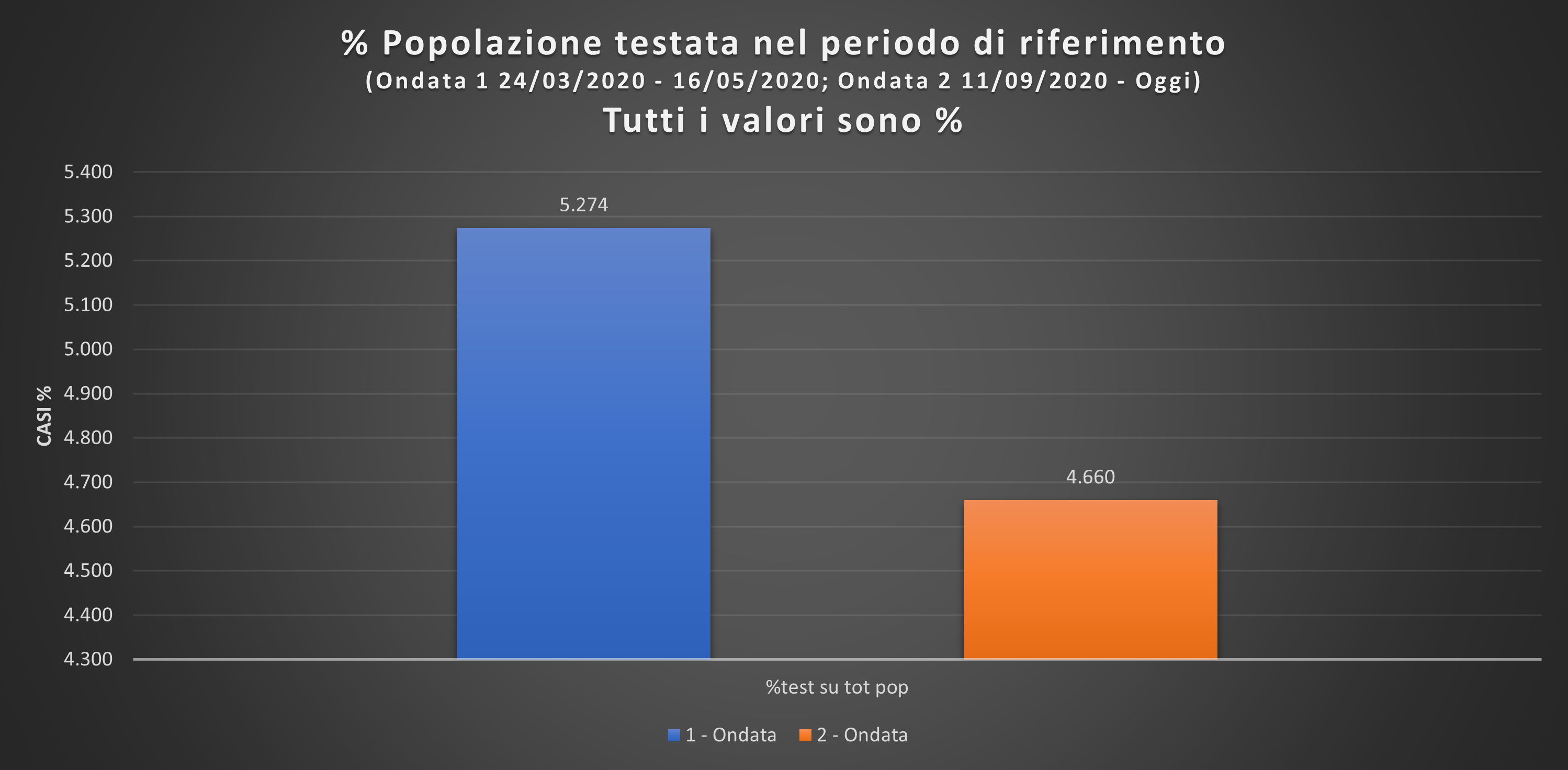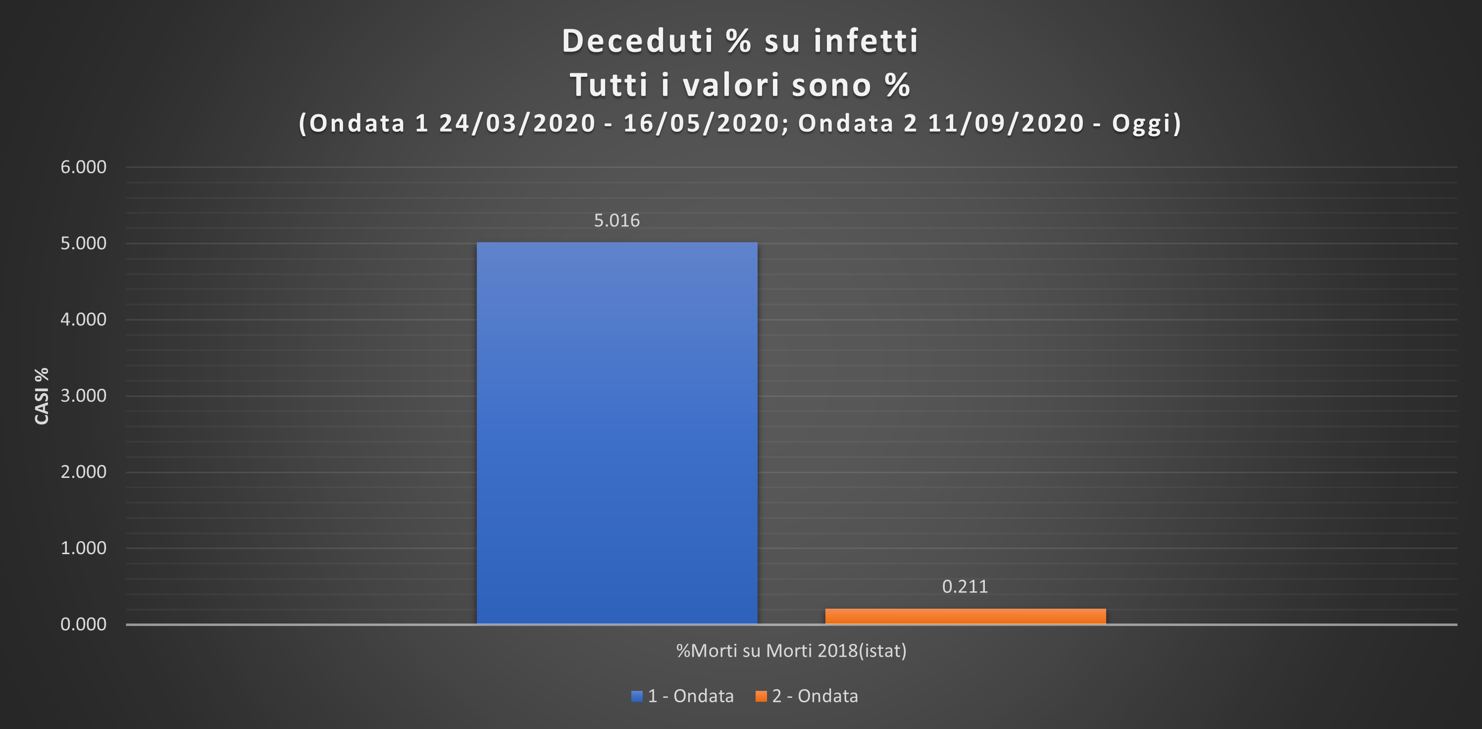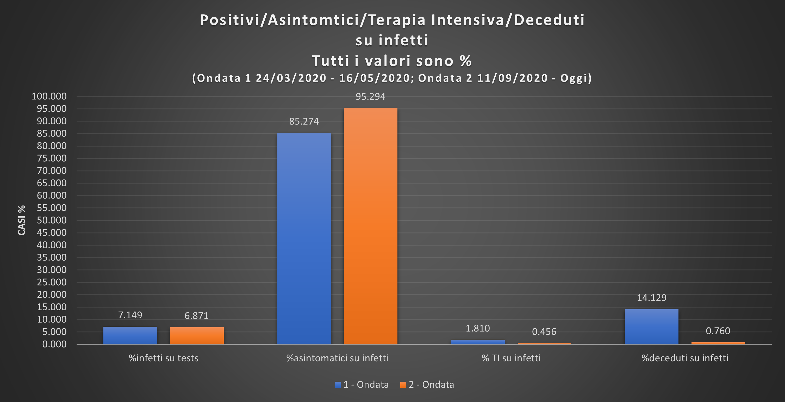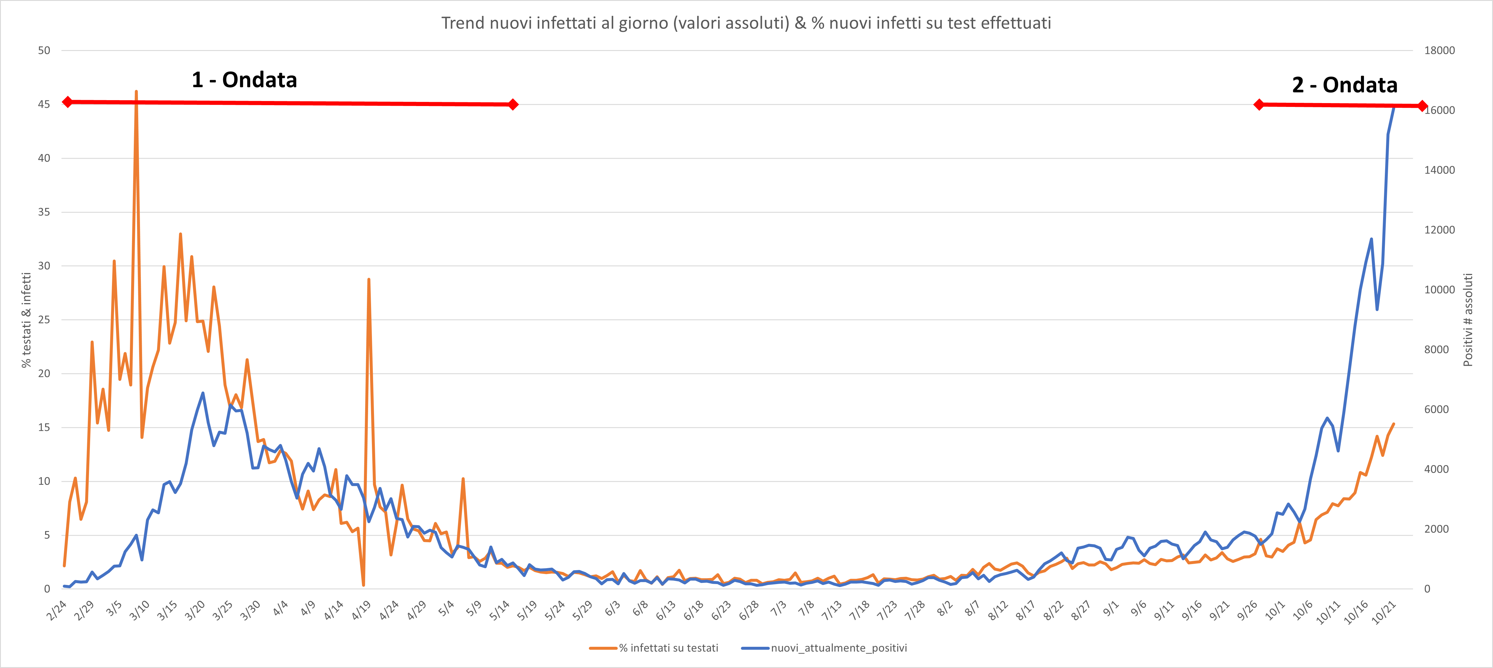 Il trend in valori assoluti continua a crescere cosi' come il trend di infetti su Test eseguiti. Questo indica un rafforzamento OGGETTIVO della pandemia.