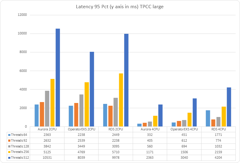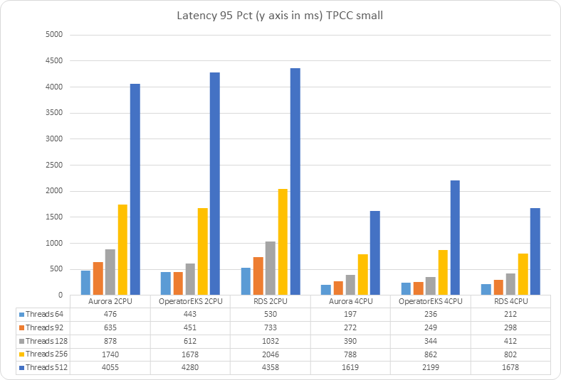 I was not surprised to see products such as Aurora shine when we have Tpcc like load, but I was pleased to see Percona solution with the operator performing in an admirable way.